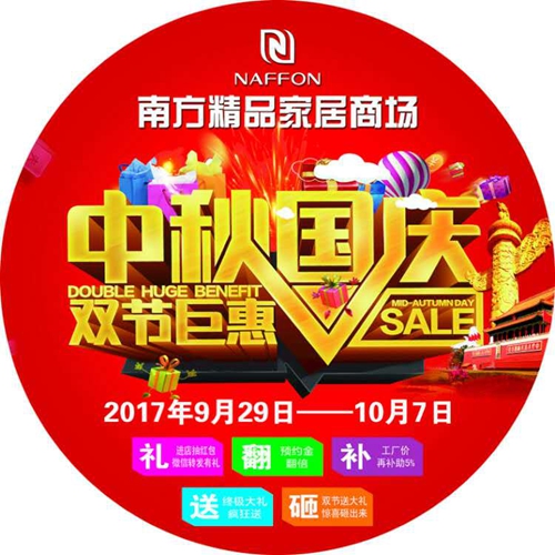 微信轉(zhuǎn)發(fā)有禮:朋友圈轉(zhuǎn)發(fā)此活動內(nèi)容,并附加(9月29日至10月7日南方家居商場中秋國慶雙節(jié)鉅惠),連續(xù)轉(zhuǎn)發(fā)3天以上,9月29日進店前66名即可領(lǐng)取***禮品一份。